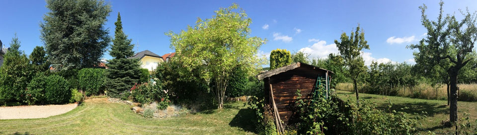 Das an unser Grundstück direkt angrenzende Wiesen- und Waldgebiet, das so genannte „Süße Gründchen“, lädt zum Spazieren und Erholen ein.